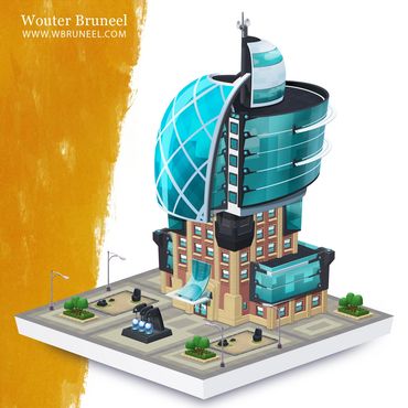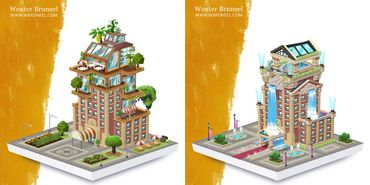 The first area of the PFC renovation meta game. I was the principal environment artist on the PFC meta game. The AD and I created the look and feel of our isometric world. This involved art direction documents, design guidelines, render guidelines and production workflows. Scroll for architectural variants and isometric concept sketches.
