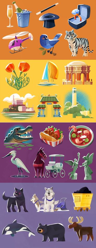 Collectibles for BFC. Our users preferred these more detailed characters over objects or charms. Our art team had a ton of fun creating countless of these collectibles. I was the principal artist on the first couple of collections, until I moved on to another game. Scroll for sketches and more collectibles.